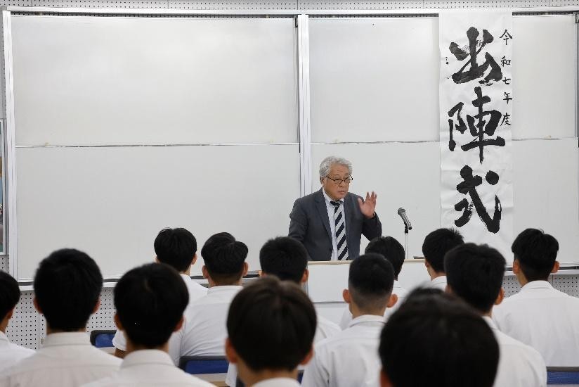 生徒代表の3年機械科 益岡 恵さん(基山中)が「高校生活で培った日頃の成果を就職試験で発揮できるよう頑張り、これまで支えてくれた方々に良い報告が出来るよう精一杯の力を出し切ります。」と決意を述べました。その後、組坂校長より激励の言葉をいただきました。それぞれが持てる力を十分発揮して、合格をつかみ取ってほしいと思います。