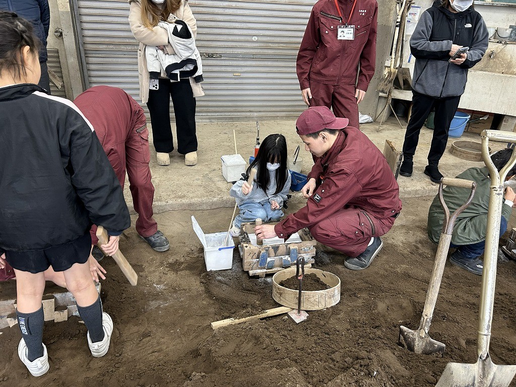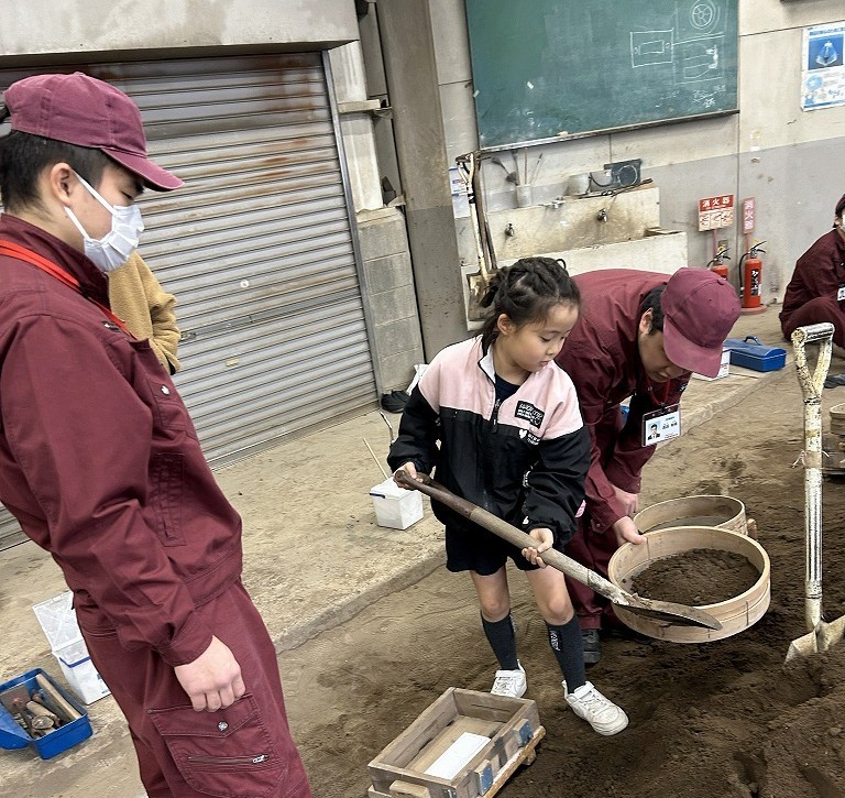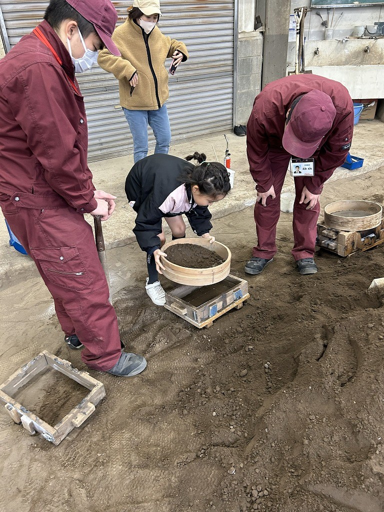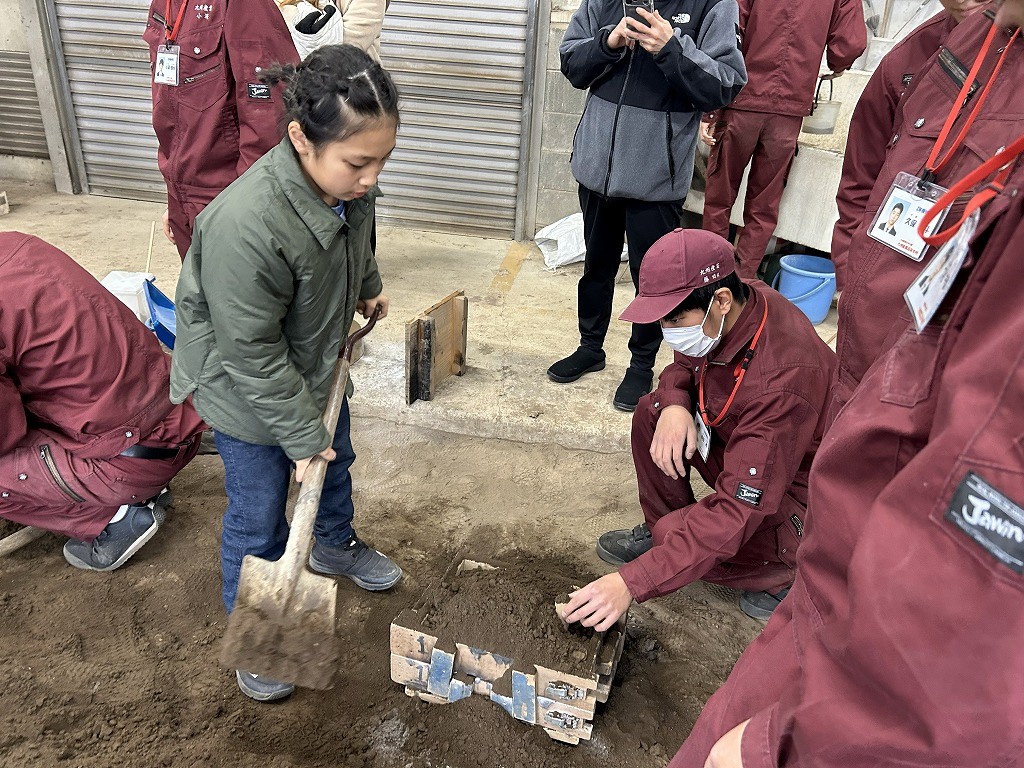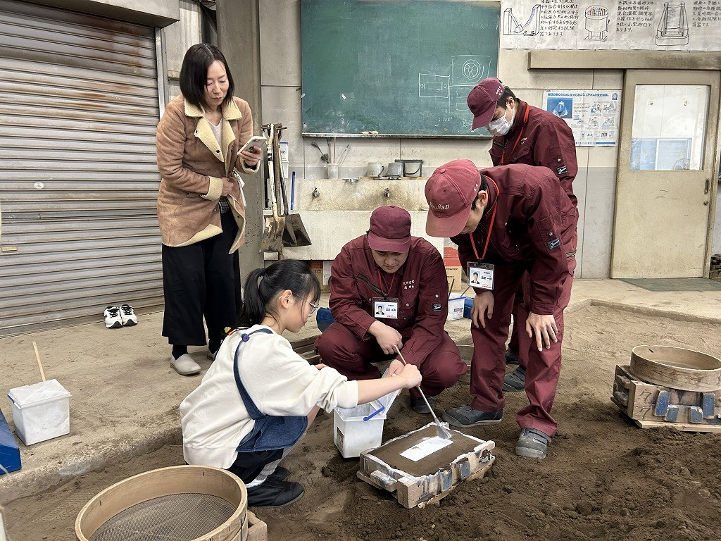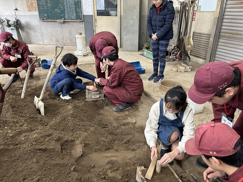 この親子教室は今回が3回目で、毎年12月に福岡県青少年科学館で行っている大人気イベントと同じプログラムです。700℃の溶けたアルミニウムを型に流し込むシーンは、参加された方々は初めて目にするものでとても驚かれていました。保護者が作った表札の原型を子供さんが製品にするリレー方式の親子教室のため、完成した表札は大切に持ち帰って頂きました。個人情報の観点から出来上がった表札をお見せ出来ない代わりに保護者アンケートより感想をご紹介します。